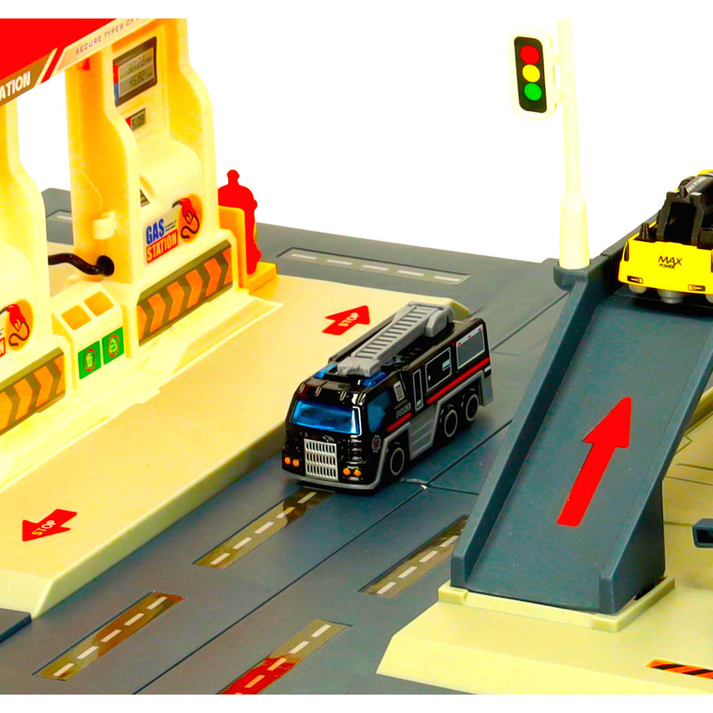 skład zestawu wchodzi stacja benzynowa, parking policyjny oraz dwa