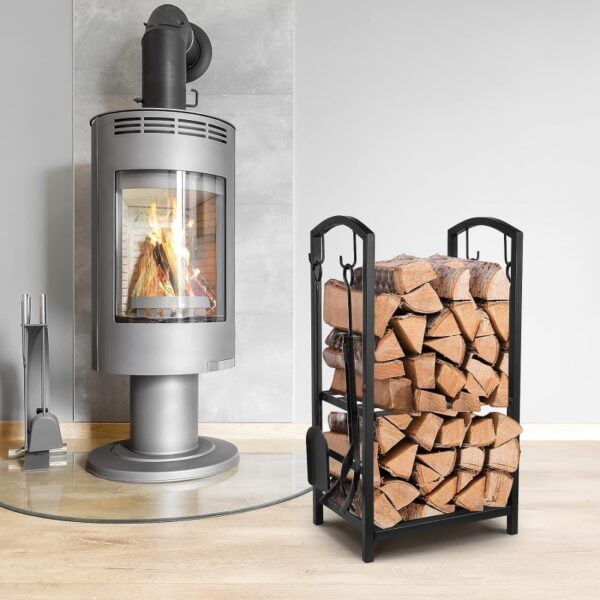 To stylowe i dopasowane uzupełnienie domowego kominka. Stalowa konstrukcja powoduje, że stojak jest stabilny i trwały. Klasyczna czerń będzie elegancko się prezentować z każdym wnętrzem. Poczuj zimową aurę. Usiądź wygodnie w fotelu przy kominku i rozkoszuj się ciepłem żywego ognia. Przybory ze stojaka sprawdzą się świetnie nie tylko do kominka ale również grilla, pieca itp. W skład zestawu wchodzą: