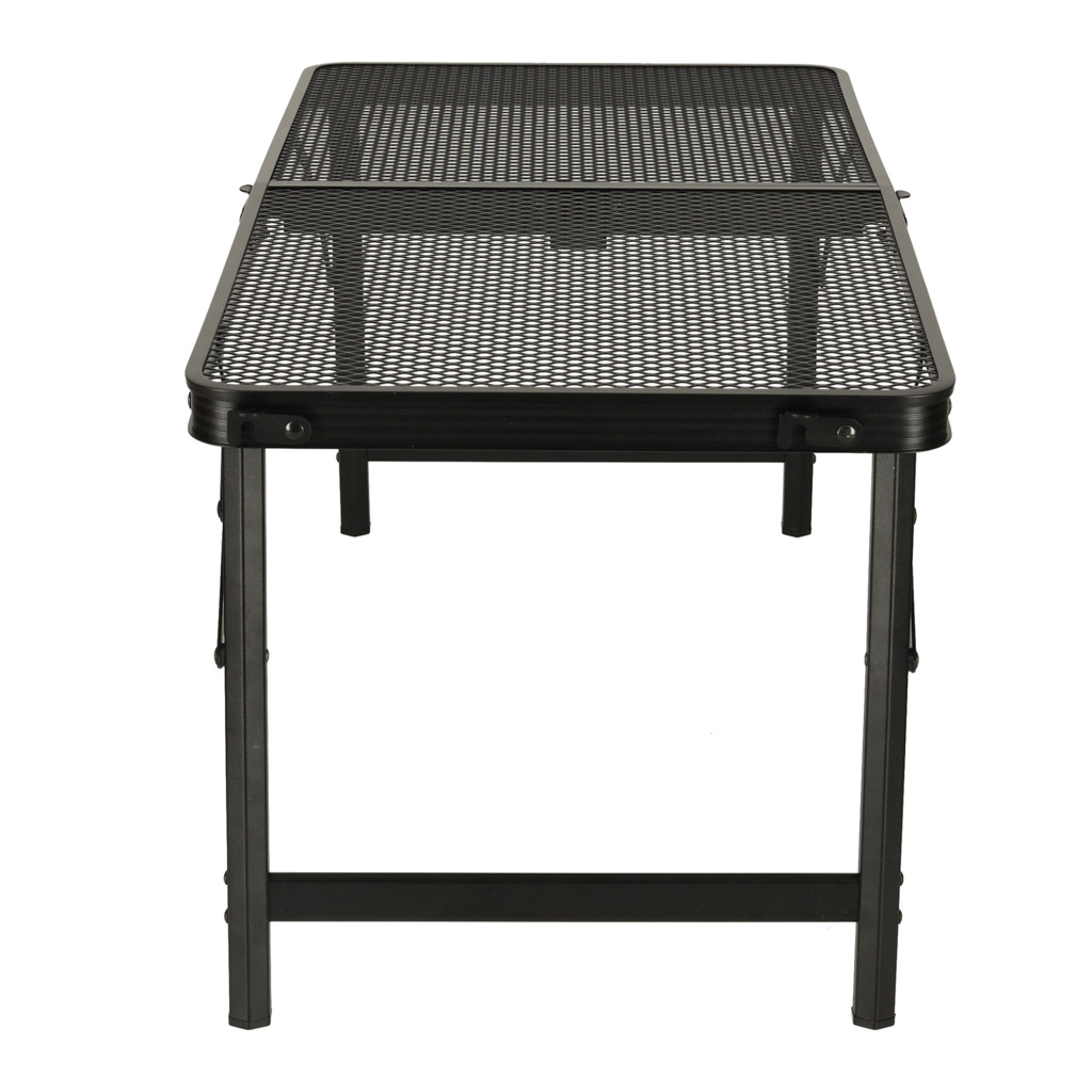 Składany stolik turystyczny z aluminiową konstrukcją i żelaznym blatem siatkowym. Wymiary: 88 × 60 × 40 x 27 cm, waga: 1,6 kg. Idealny na kemping, piknik, balkon, do ogrodu i w podróży. Lekki, kompaktowy i łatwy w transporcie.