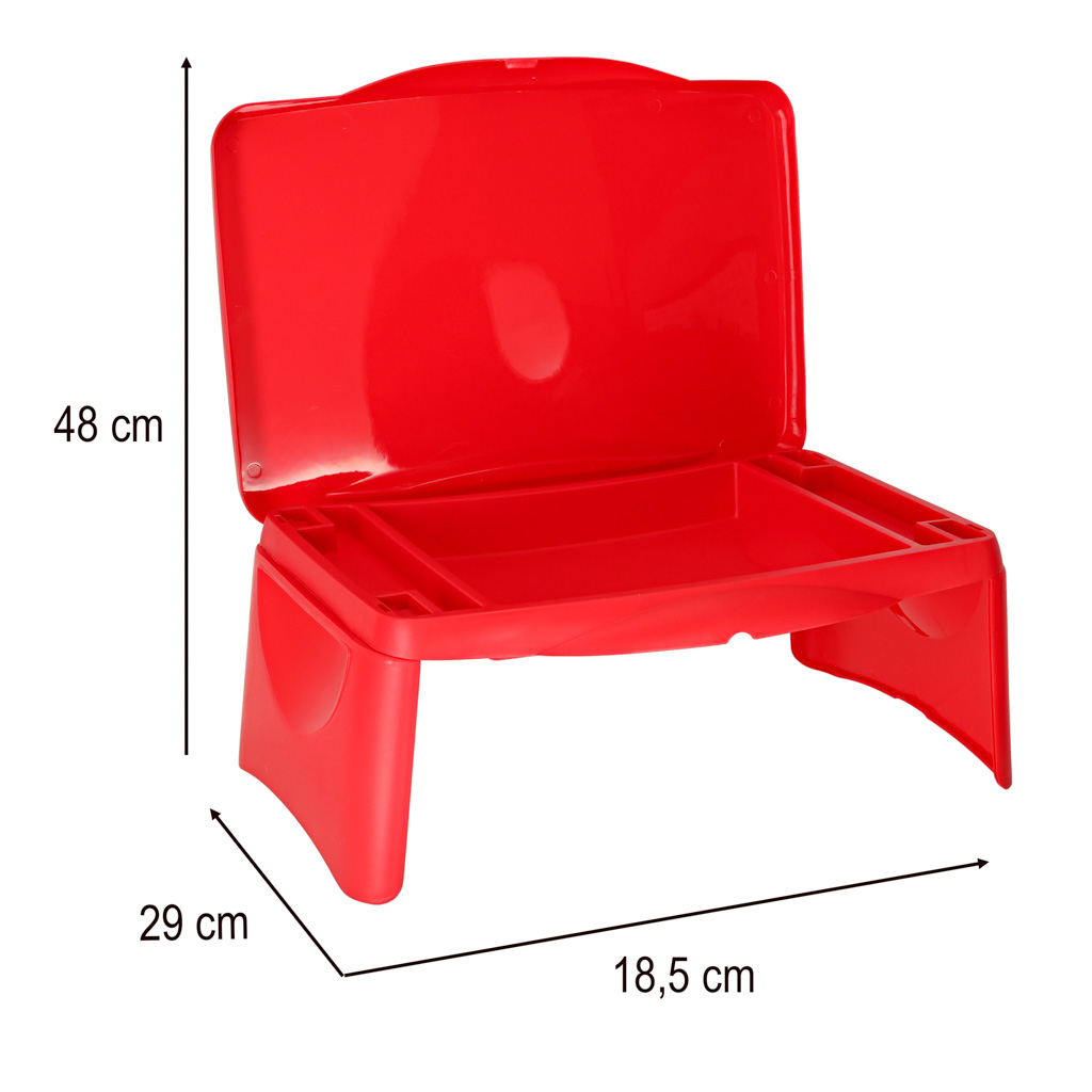 Stolik samochodowy do auta podróżny przenośny składany dla dzieci ze schowkiem czerwony
