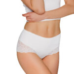 Majtki o konstrukcji bazylianów idealne dla osób ceniących sobie elegancję i piękną koronkę. Z przodu dodany panel z mikrofibry. Dostępne w kolorach biały, czarny i beż świetnie modelują pośladki, pozostając jednocześnie niewidoczne pod ubraniem. Nasza bielizna świetnie dopasowuje się do ciała i możesz komfortowo nosić ją przez cały dzień. Model 159 projektowaliśmy z myślą o elegancji i wygodzie.