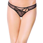 Czarujące stringi z cyrkoniową, połyskującą ozdobą z przodu. Z tyłu trójkącik.
