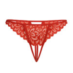 Eleganckie stringi damskie w kolorze czarnym, są połączeniem designerskich pasków i delikatnej koronki. Ich unikalny motyw roślinny dodaje im subtelności i wyjątkowego uroku. Wykonane z wysokiej jakości materiałów, zapewniają doskonałe dopasowanie i wygodę. Delikatna struktura materiału sprawia, że są one nie tylko piękne, ale także przyjemne w dotyku. Otwarty krok to nie tylko odważny element tych stringów, ale także praktyczny, umożliwiający swobodę ruchów i dodający nutkę zmysłowości. Dzięki wysokiej jakości wykonania, te stringi są trwałe i wytrzymałe, co oznacza, że można cieszyć się nimi przez długi czas. Kombinacja czerwonego koloru, czarnej koronki i motywu roślinnego tworzy niezwykle atrakcyjny wygląd, który podkreśla piękno każdej kobiety. To nie tylko bielizna, to również wyraz klasy i stylu. Poczuj się pewnie i uwodzicielsko w modelu, który łączy wygodę, wysoką jakość i subtelność w jednym.