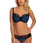 Eleganckie stringi w fuksjowym kolorze o klasycznym kroju. Wycięty tył, wykonane są z koronki oraz siateczki.