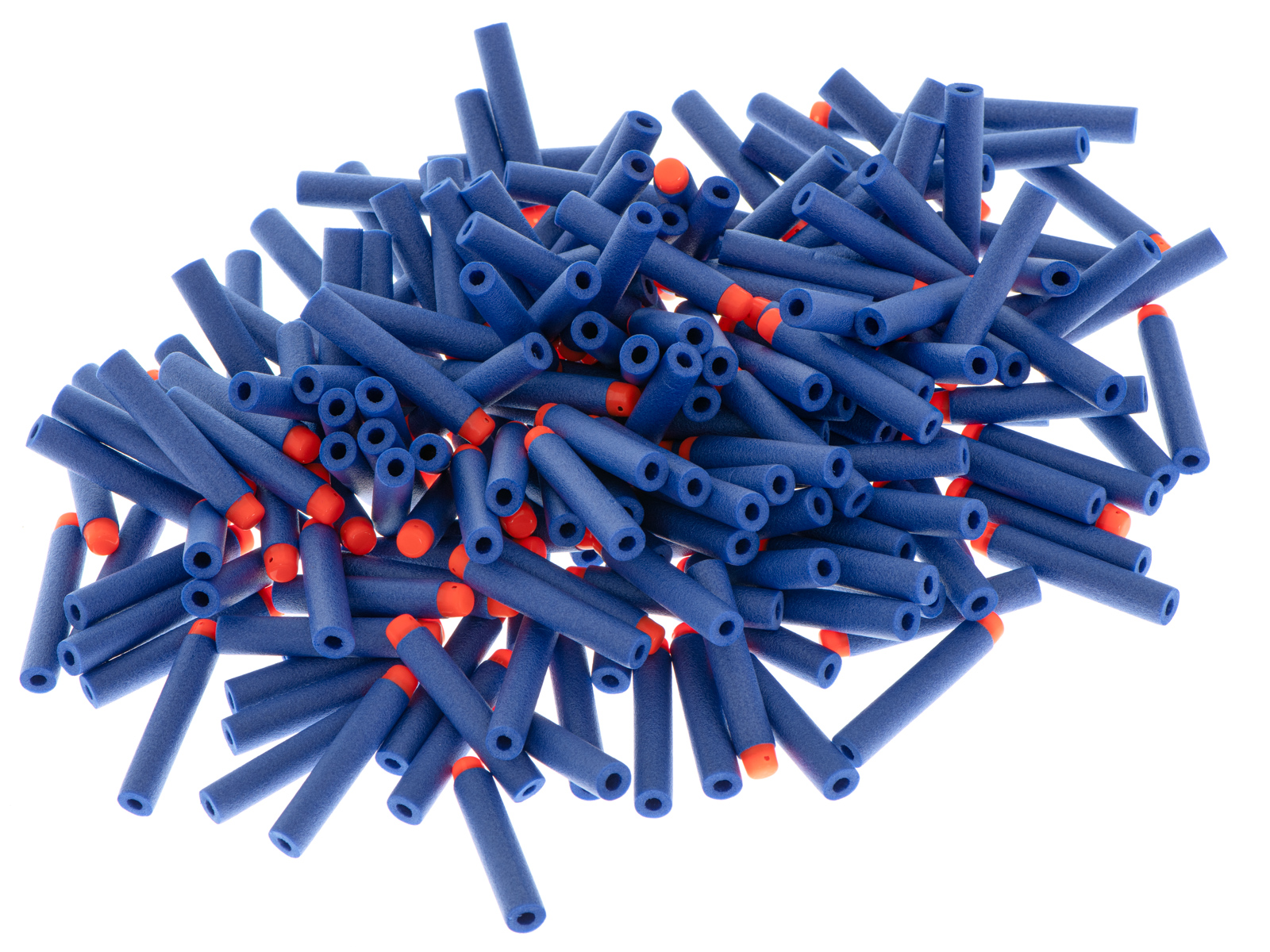 Zestaw strzałek kompatybilnych z wyrzutnią NERF. Pasują do większości karabinów na miękkie strzałki. Wykonane z tworzywa przypominającego piankę. W zestawie: 200 pocisków. Kolor: niebiesko-pomarańczowy. Dł. strzałki: 7cm. Średnica strzałki: 1,2cm.