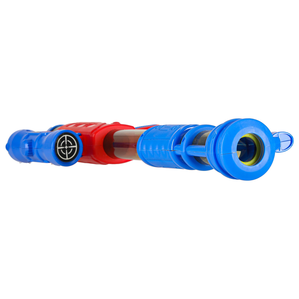 Gra zręcznościowa – strzelanie do celu. Ta gra z pewnością będzie wymagała ogromnej ilości precyzji, ponieważ strzelanie do celu wcale nie jest takie łatwe, jak mogło by się wydawać. Tworzywo: plastik, pianka. Wiek: 3+. Wym. pistolet: 51 x 20 x 6 cm.