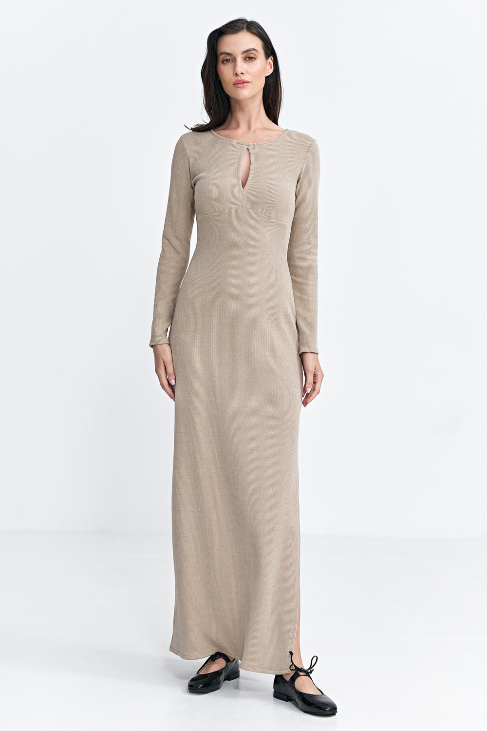 Sukienka maxi z łezką na dekolcie S261 Beige – Nife