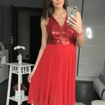 Krótka elegancka sukienka o dopasowanym kroju. Sukienka wykonana z materiału w cekiny. Sukienka zapinana na kryty zamek. Idealna na wiele okazji.