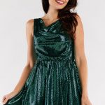 Mini sukienka z luźno układającej się na ciele tkaniny w trzech kolorach do wyboru. Sukienka zakończona jest falbanką, co dodaje jej niezwykle dziewczęcego uroku. Rękawy ozdobione są złotymi guzikami.