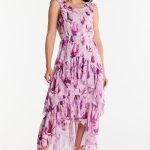 Dopasowana, kobieca sukienka z ozdobnym wiązaniem na ramionach. Zapinana z tyłu na zamek kryty. Dekolt w serek. Zaprojektowano i uszyto w Polsce.