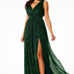 Cekinowa sukienka kopertowa z wiązaniami na bokach i dodatkowym paskiem wykonanym z tego samego materiału. Delikatnie dopasowana, z szerszym rękawem, który jest marszczony gumką przy nadgarstku.