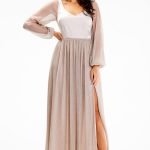 Cekinowa sukienka kopertowa z wiązaniami na bokach i dodatkowym paskiem wykonanym z tego samego materiału. Delikatnie dopasowana, z szerszym rękawem, który jest marszczony gumką przy nadgarstku.