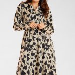 Trapezowa sukienka mini z krótkim rękawem i przeszytym przodem. Model posiada stójkę oraz rozcięcie na dekolcie. Idealna propozycja na randkę, wyjście na miasto jak i codziennych stylizacji.
