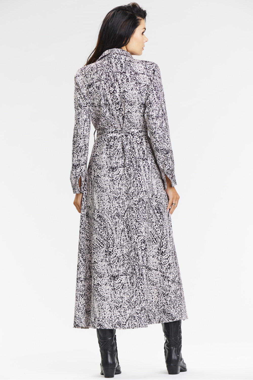 Sukienka koszulowa maxi. Odkryj nową definicję elegancji z naszą sukienką koszulową maxi, idealną na każdą okazję, od pracy po spotkania. Casualowy styl łączy się z funkcjonalnością, a przewiązanie szarfą w talii dodaje jej uroku. Długie rękawy, zapięcie na guziki i czarno-biały wzór wprowadzają nowoczesny charakter do codziennych stylizacji. Sukienka została uszyta z wysokiej jakości materiału, który zapewnia komfort noszenia. Możliwość regulacji rękawów i zapięcie na guziki dodają wszechstronności, idealnej na każdą porę roku. U Idealna na co dzień, do pracy i na spotkania, dzięki przewiązaniu w talii sukienka dopasowuje się do sylwetki.