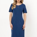 Ta sukienka to idealny wybór na wiele okazji. Dopasowany, ołówkowy krój podkreśla sylwetkę, a asymetryczny dół z ozdobnym detalem nadaje stylizacji oryginalnego charakteru. Krótkie rękawy i okrągły dekolt zapewniają klasyczny wygląd, a kryty zamek i rozcięcie z tyłu gwarantują komfort noszenia.