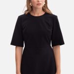 Sukienka wykonana z miękkiej, prążkowanej dzianiny o gramaturze 250 g, która zapewnia wygodę i naturalne dopasowanie do sylwetki. Model wkładany przez głowę, bez kieszeni i podszewki, utrzymany w lekkiej i kobiecej formie. Klasyczny, okrągły dekolt z subtelnym wycięciem podkreśla szyję, a długie rękawy lekko rozszerzane przy mankietach dodają całości delikatnej elegancji. Zdobienia w postaci falowanego dołu i wykończenia rękawów wprowadzają nutę romantycznej lekkości. Fason łączy dopasowaną górę z lekko rozkloszowanym dołem, co pięknie modeluje sylwetkę i zapewnia swobodę ruchów. Długość midi, sięgająca do połowy łydki, nadaje sukience uniwersalny, ponadczasowy charakter. Zaprojektowana i uszyta w Polsce z dzianiny wyprodukowanej w Łodzi, to połączenie jakości, kobiecej elegancji i lokalnego rzemiosła.