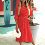 Sukienka z ozdobnymi guzikami o dopasowanym kroju, z rękawem 3/4 wykończonym mankietem. Idealna sukienka na wyjątkowe okazje.