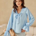 Sukienka mini z długimi rękawami. Góra kopertowa, a dół delikatnie rozkloszowany. Nie posiada podszewki, jest zapinana na podwójne wiązanie w pasie.