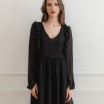 Klasyczna prosta sukienka z długim rękawem z ozdobnymi falbanami w kratę. Sukienka idealna na co dzień jak i specjalne okazje.