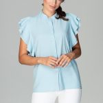 Sukienka o długości do kolana z długim rękawem, w dekolcie duże wykładane klapy. Model w pasie ma geometryczną baskinkę z tyłu rozcięcie nadające komfortu użytkowania.