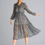 Rozkloszowana sukienka z rękawem 3/4, taliowana w pasie. Bardzo kobieca. Model o klasycznym fasonie. Sukienka zapinana na kryty zamek.