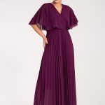 Satynowa sukienka maxi w kwiaty z kopertowym dekoltem i długimi rękawami zakończonymi gumką. Model z plisowanym dołem i elastycznym paskiem w talii.