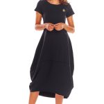 Dzianinowa mini sukienka z krótkim rękawem. Z przodu naszywka z numerem. Sukienka ma boczne kieszenie. Zachowana w ponadczasowych kolorach sprawdzi się świetnie w każdej stylizacji.