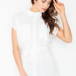 Modna sukienka ze stójką, zapinana na napy, oraz przewiązywana w pasie. Wykonana z delikatnego materiału imitującego zamsz. Bardzo przyjemna w dotyku.