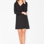 Elegancka sukienka bombka z odkrytymi ramionami. Wykonana z grubszego materiału imitującego zamsz. Ozdobne przeszycia, pięknie podkreślają sylwetkę.
