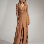Elegancka sukienka o prostym kroju zapinana na kryty zamek, dekolt w szpic. Sukienka posiada rękawy z oryginalnymi rozcięciami. Sukienka bez podszewki. Sukienka wykonana jest z wysokiej jakości, gładkiego, nierozciągliwego materiału.