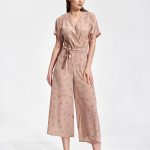 Luźna sukienka do kolan, dekolt w serek, marszczona pod biustem, krótki bufiasty rękaw z gumką. Sukienka wiązana z tyłu paskiem z materiału, bez kieszeni i zapięcia.