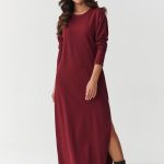 Sukienka maxi z metalicznego materiału to szykowna kreacja, która emanuje blaskiem i wdziękiem. Przekładany dekolt w serek stanowi subtelny, ale efektowny detal, który eksponuje szyję i ramiona, jednocześnie dodając całości elegancji i zmysłowości. Taki krój dekoltu sprawia, że sukienka ma bardziej wyrafinowany wygląd i podkreśla naturalne kształty sylwetki. Długie, wąskie rękawy w połączeniu z resztą sukienki tworzą elegancką i spójną całość. Model posiada subtelne rozcięcie po boku, które dodaje jej sensualności oraz wprowadza lekkość do całej stylizacji. Dzięki temu, jest nie tylko szykowna, ale także bardzo kobieca i komfortowa w noszeniu. Sukienka została zaprojektowana w dopasowanym fasonie, który podkreśla talię i naturalnie modeluje sylwetkę, tworząc efekt smukłej figury. Dzięki eleganckiemu, błyszczącemu materiałowi i klasycznemu krojowi, kreacja doskonale sprawdzi się na wieczorne wyjścia, imprezy okolicznościowe, wesele czy bankiety. Jest to ponadczasowy wybór, który zapewni Ci stylowy wygląd w każdej sytuacji. Ta elegancka sukienka jest doskonała na wyjątkowe okazje, które wymagają elegancji i klasy. Połącz ją z wysokimi szpilkami i biżuterią, aby stworzyć efektowną stylizację w której oczarujesz samą siebie i przyciągniesz wzrok innych.