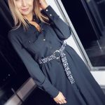 Sukienka o dopasowanym kroju, taliowana. Sukienka odcinana w pasie, pas podkreślony ozdobnymi guziczkami. Idealna na wiele okazji.