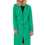 Sukienka z długim rękawem, kołnierzykiem oraz dekoltem w literę V. Sukienka odcinana w talii, na przodzie ozdobne guziki. Sukienka bez podszewki, zapinana na kryty zamek. U dołu ozdobne plisowanie. Zaprojektowana i uszyta w Polsce.