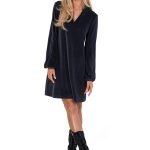 Sukienka z długim wąskim rękawem oraz modelującymi przeszyciami na przodzie. Sukienka bez podszewki, zapinana na kryty zamek. Na ramionach przeszycia z wszytymi wysokimi poduszkami. Zaprojektowana i uszyta w Polsce.