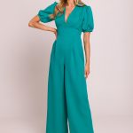 Urocza mini sukienka wykonana z gładkiej tkaniny, łącząca lekkość i kobiecy styl. Rozkloszowany dół z klinami nadaje jej zwiewności i elegancji, a rękawy do łokci zapewniają subtelne wykończenie. Głęboki dekolt w kształcie litery V pięknie eksponuje szyję i dekolt. W talii dwa ozdobne guziki dodają wyjątkowego akcentu i podkreślają sylwetkę. Sukienka zapinana jest z tyłu na kryty zamek, co gwarantuje idealne dopasowanie. Brak podszewki sprawia, że jest lekka i komfortowa. Zaprojektowana i uszyta w Polsce z dbałością o każdy detal.