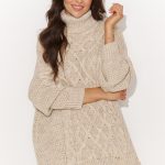 Sukienka za kolano, uszyta z dzianiny dresowej dostępna w kolorach: khaki, piaskowym i czarnym. Sukienka posiada długi rękaw, dekolt w serek i kieszenie. Dodaje jej to stylu casualowego. Dodatkowo dolna część sukienki jest bardzo swobodna. W sukienkę wszyta jest ozdobna blaszka. Zaletą tej sukienki jest bez wątpienia jej luźny krój, który podkreśla sylwetkę w subtelny sposób. Możesz nosić ją na mniej lub bardziej formalne spotkania, w zależności od dodatków, na które się zdecydujesz.