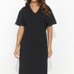 Piękna krótka sukienka typu kimono z subtelnym ściągaczem podkreślającym talię, emanująca elegancją i szykiem. Złota błyszcząca blaszka z tyłu dodaje jej subtelnego ozdobnego akcentu. Głęboki dekolt podkreśla biust, nadając sukience zmysłowego charakteru. Ta kobieca sukienka doskonale sprawdzi się zarówno w pracy, dodając szykownego wdzięku, jak i podczas eleganckiej kolacji, tworząc niezapomniany look. Dostępna w kolorach: jasny beż, khaki, ziemisty brąz, czekoladowy i czarny, pozwala na wybór odcienia, który najlepiej odzwierciedli indywidualny styl kobiety, która ją założy. To połączenie klasyki i nowoczesności, które z pewnością przyciągnie spojrzenia.