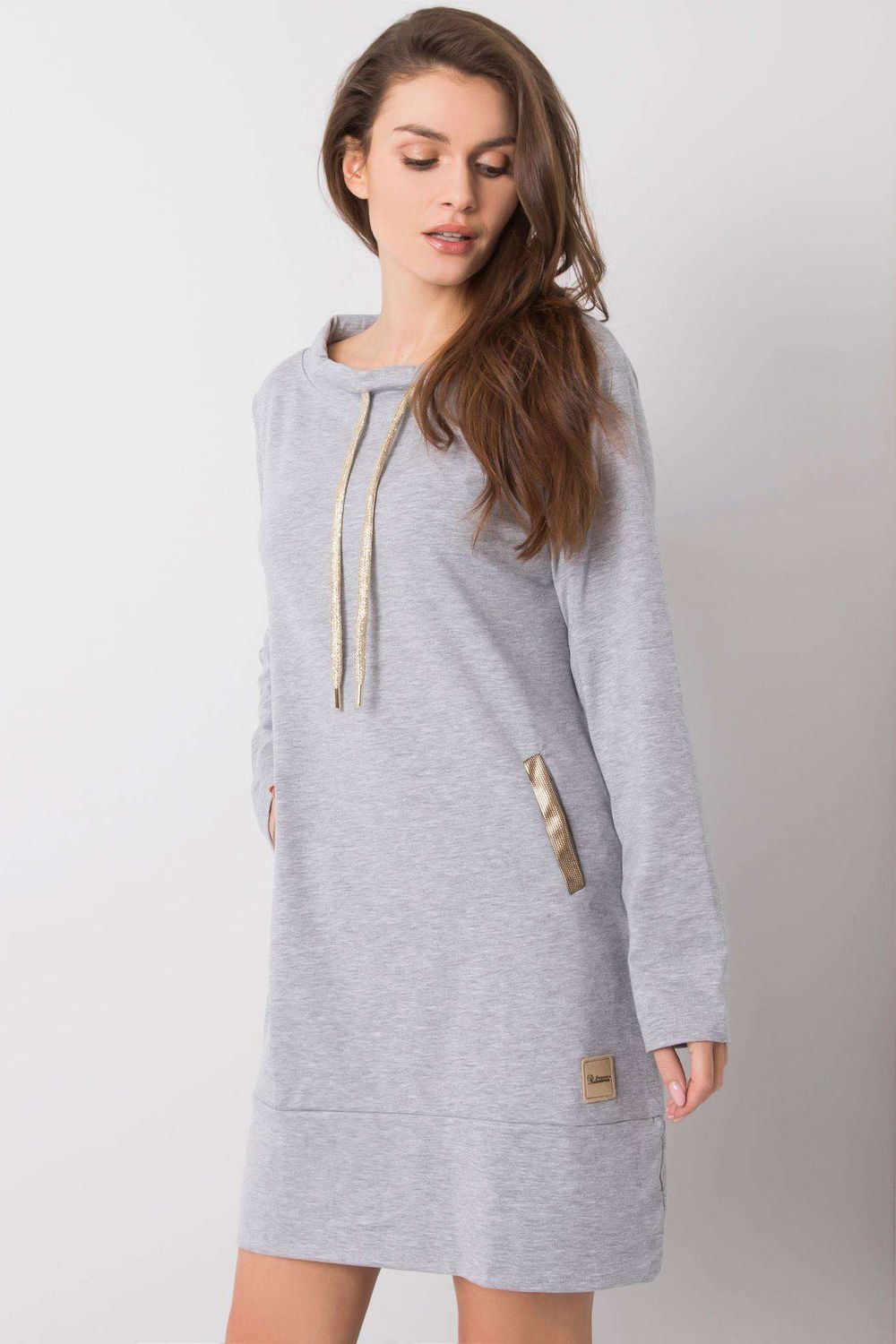Sukienka z bawełny z długim rękawem w kolorze szarym. Po bokach kieszenie wsuwane. Idealna na co dzień.