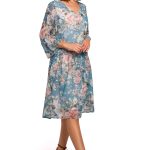 Zachwycająca sukienka o kroju dopasowanym górą na zakładkę i z rozkloszowanym dołem sięgającym poniżej kolan. Sukienka bez podszewki.