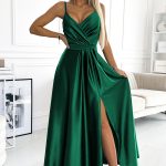 Koszulowa rozkloszowana sukienka w kolorze zieleni butelkowej. Wykonana z przyjemnego w dotyku, mało elastycznego materiału (95% poliester, 5% elastan). Marka numoco.