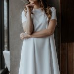 Sukienka o luźnym kroju z kieszeniami na biodrach. Sukienka z dekoltem w łódkę i rękawem 3/4.