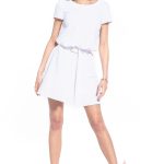 Mini sukienka z dekoltem łódkowym i krótkim rękawem.