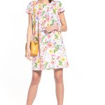Sukienka midi z dekoltem w szpic, lekko marszczona na linii piersi z bufiastym rękawem 3/4 zakończonym mankietem.