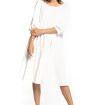 Luźna sportowa sukienka midi uszyta z dresowej dzianiny, z długim rękawem i dekoltem w szpic, z szeroką falbanką u dołu.