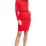Luźna sportowa sukienka midi uszyta z dresowej dzianiny, z długim rękawem i dekoltem w szpic, z szeroką falbanką u dołu.