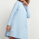 Wygodna sukienka z miękkiej dzianiny dresowej z dekoltem w stylu komin jest idealnym wyborem na chłodniejsze dni. Sukienka o kroju tuba z kieszeniami na szwie na biodrach, wykończona małymi mankietami na końcach rękawów i ściągaczem u dołu świetnie tuszuje niedoskonałości sylwetki. Prosta forma i długość przed kolano pozwala na tworzenie wielu ciekawych stylizacji, zarówno eleganckich, jak i w bardziej codziennym wydaniu. Sukienka jest szyta z dzianiny z certyfikatem OEKO-TEX Standard 100.