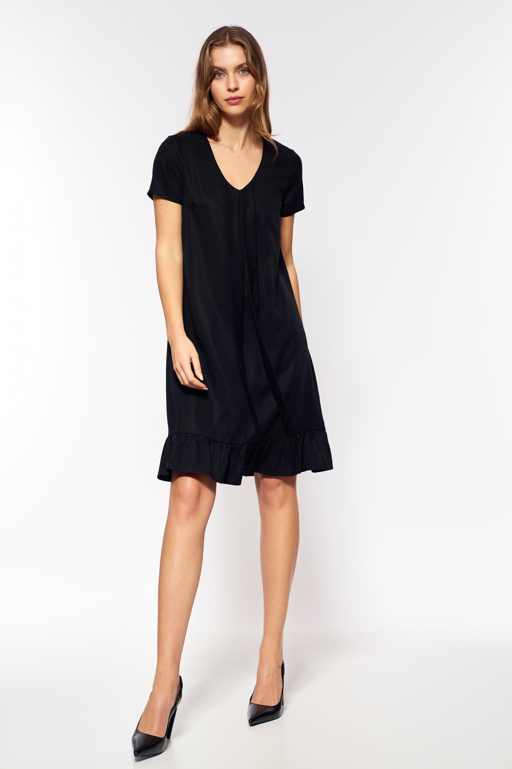 Sukienka Wiskozowa czarna sukienka z fontaziem S199 Black – Nife