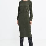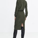 Sukienka z dzianiny prążkowanej z długim rękawem S260 Green – Nife