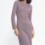 Sukienka z dzianiny prążkowanej z długim rękawem S260 Puprpura – Nife